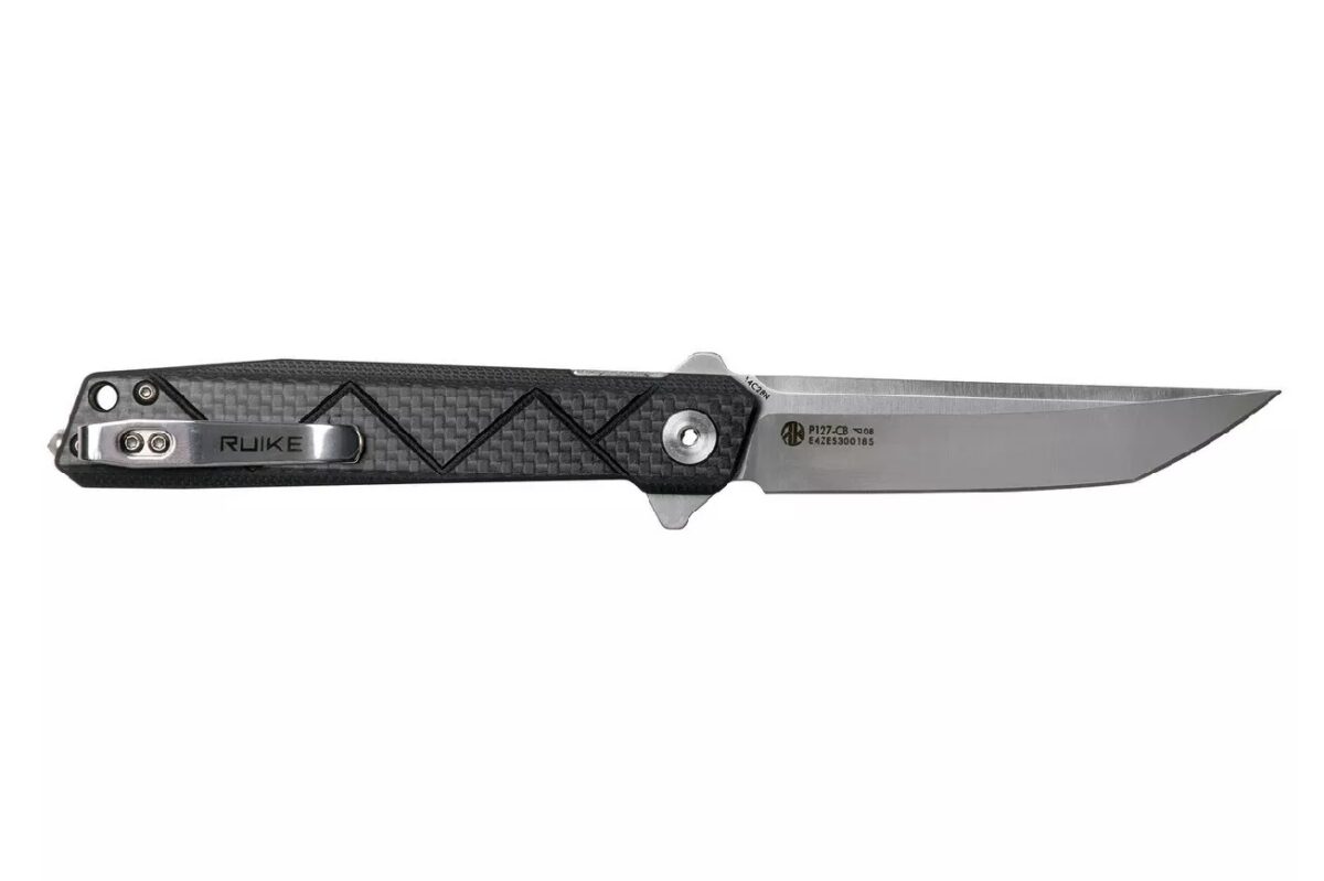 Version P127-CB adds a carbon fiber overlayer onto G10 handle scales.